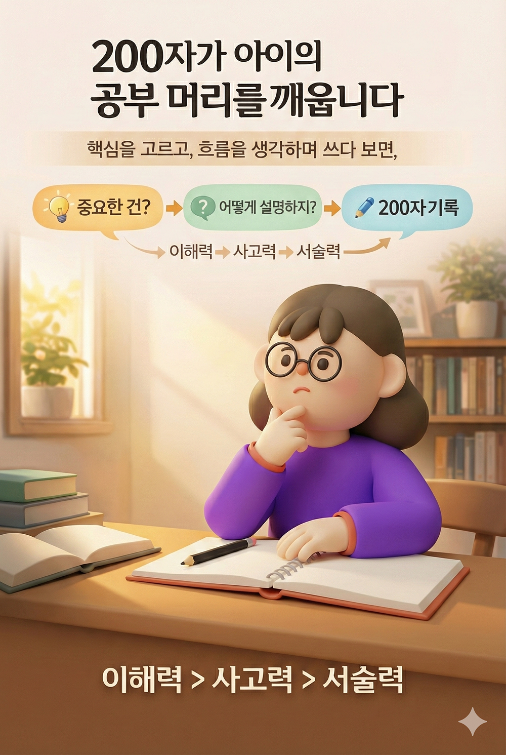 짧은 분량 안에 핵심을 압축해 전달하는 훈련은 모든 학습의 기초인 '요약 능력'과 '핵심 파악 능력'을 길러줍니다.